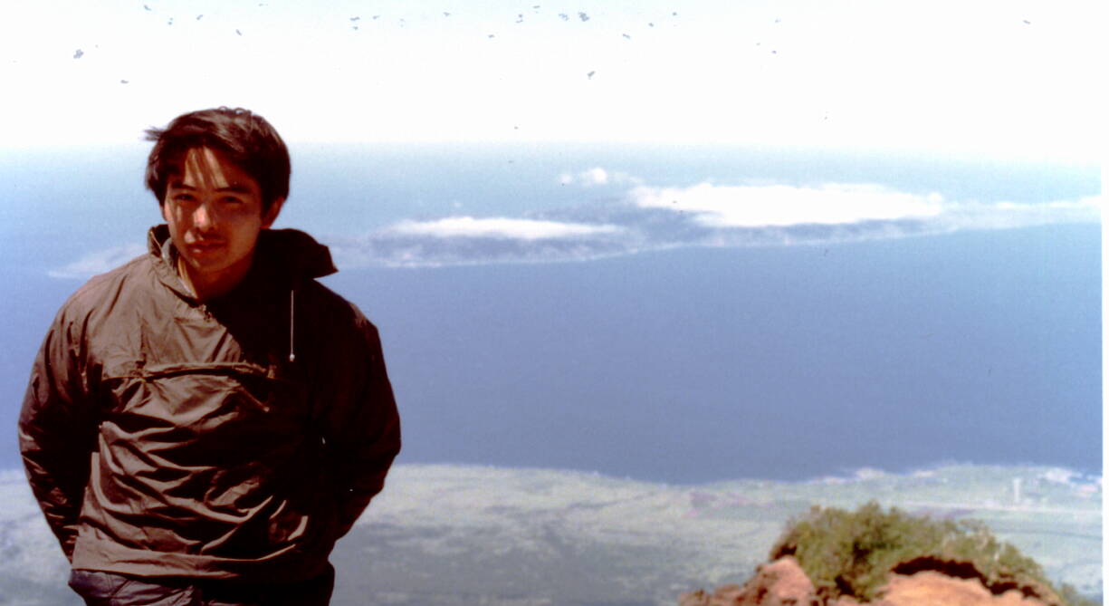 昔のアルバムを引っ張り出したところ、このあたりを訪れたのは1978年の夏であることが分かった。まず利尻島・オシドマリのユースを明け方に出発し利尻岳に登頂。その日は最高の天気にめぐまれ、眼下の礼文島はもちろん、遠く、サハリンを眺めることができた(写真右は利尻山頂上にて。背後の平べったい島が礼文島)。山を下りてからは自転車で島内を一周。午後の便で礼文島に到着、その翌日は霧雨模様であったが、「愛とロマンの8時間コース」を単独で踏破し、西海岸のお花畑を楽しむことができた。