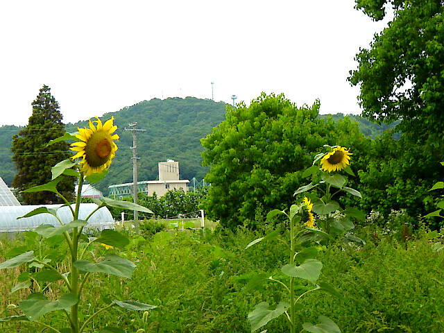 岡大・農場の一角で早くもヒマワリの花が咲いている。ここは昨年ヒマワリ畑となっていたところだ。ヒマワリに限らず、種を蒔いて丁寧に育てた苗に比べると、種がこぼれて勝手に育った株のほうが遥かに逞しい。これは決して「ほうっておいたほうがよく育つ」という根拠にはならない。勝手に育った株というのは、実は、こぼれ落ちた何百、何千もの種の中で、淘汰され、生き残るべくして生き残った最強の株であるからだ。 |