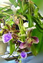 最近の洋蘭事情。パフィオペディラムは1月30日掲載と同じ花。長期間楽しめるのがよい。青紫の花はジゴペタルム。いずれも長年にわたり自分で育てているのが自慢。