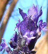 四季咲きラベンダー。大寒から立春の頃は一年中で最も寒い時期であるが、暖冬ということもあって、このラベンダーのほか、この周辺ではディモルフォセカ(オステオスペルマム)、レオノチス、ルドベキア、ガザニアなどが元気よく花を開いている。