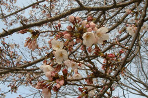 サクラサク。今年は新年度開始に併せて見頃となってきた。