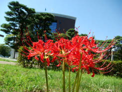 2012年版・岡山大学構内でお花見(59)本部棟前に対峙する彼岸花 9月25日の楽天版(写真左)にあるように、岡大・南北通り西側の空き地には20年以上前から彼岸花の群生があるが、数年前よりその生息地域が西方向に広がり、本部棟とのツーショットも撮れるようになってきた。「日本に存在するヒガンバナは全て遺伝的に同一であり、三倍体である。故に、種子で増えることができない。」とされていることから種で殖えたとは考えにくい。おそらく、この付近の遊歩道を設置する時に、工事で掘り出された球根が遊歩道西側の空き地で根づいたものと思われる。 ※岡山大学構内の花だよりのアルバム(追記更新型)を下半期と上半期に分けて公開中です。下半期分は随時追加していきますので、時たま覗いていただければ光栄です。 |
