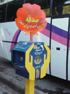 イランは、1996年初め現在で、世界最大の難民受け入れ国であり、200万人以上を受け入れていました。イラン政府によると、アフガン難民140万人とイラク難民60万人がまだ国内にとどまっており、その他にも合計で4万8000人(タジク人、ボスニア人、アゼリ人、エリトリア人、ソマリア人など)の難民がいます。と記されてあることに気づく。現在1999年時点でどうなっているのかは分からないが、たとえ一時期であったにせよイランが世界最大の難民受け入れ国になっていたとは全く知らなかった(←日本は何人受け入れていたっけなあ)。 写真はイスファハンのホテル近くにあったユニセフの募金箱。最初は郵便ポストだと思っていたが葉書を入れる穴がない。ガイドさんに聞いてやっと正体が分かった。すべてペルシャ文字で書かれてあるところからみて、外国人向けではなく国内向けの募金活動をしているように見える。意外といっては失礼だが、国際協力に熱心なお国であるとの印象を受けた。 |