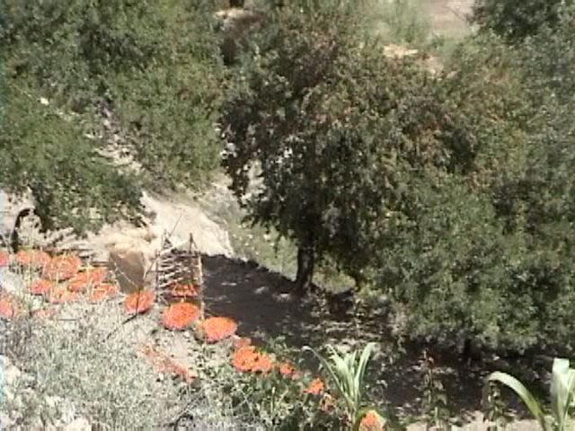 - ナガールの民家ではアンズの天日干しをよく見かけた。