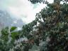 - アンズ越しにウルタル峰方面を眺める。この日は一時的に積乱雲が発生し、遠くで雷の音が聞こえた。