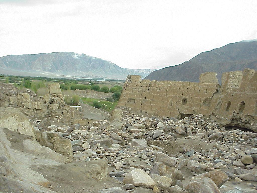 - 城壁内から北方向を眺める。雲の切れ目からムスターグ・アタの頂上付近が見えた。
