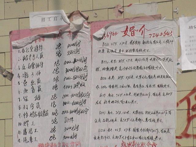 - 【8/5】高速を出たあと(たぶん)雅安でトイレ休憩。壁には求人広告と、結婚紹介情報あり。