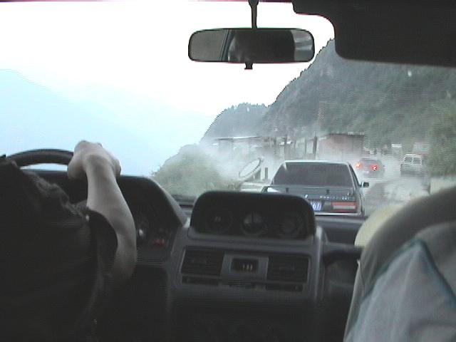 - 【8/5】トンネルを出たあとの工事区域。康定までずっと道路工事で、ほこりと振動に悩まされる。