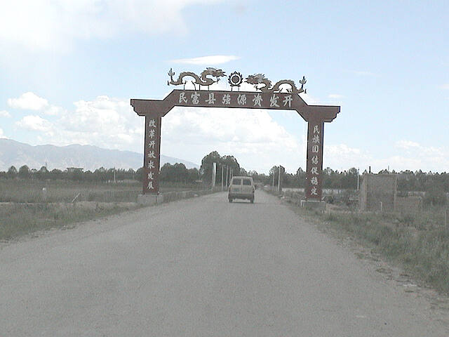 - 興海の町の入口。漢民族中心の町らしく、龍の飾りがある。