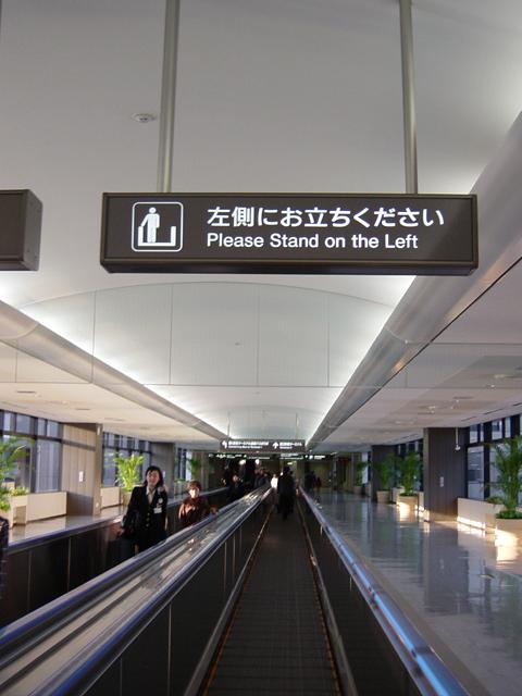 写真右下は、搭乗口に向かう「動く歩道」。2002年12月21日の日記に書いたように、エスカレーターや動く歩道で、急ぐ人のためにどちら側を空けるのかは、地方によって異なっている。成田空港では写真のように、左側に立つように誘導していた。なお、今回は家族の帰省の関係で、往復とも福岡〜成田便を利用したが、福岡空港や博多駅では、おおむね、エスカレーターの左側に立っている人のほうが多かった、オーストラリアでも観察してみたが、特徴的な傾向を見出すことはできなかった。というか、エスカレーターの上をせっかちに歩く人を見かけなかった。 |