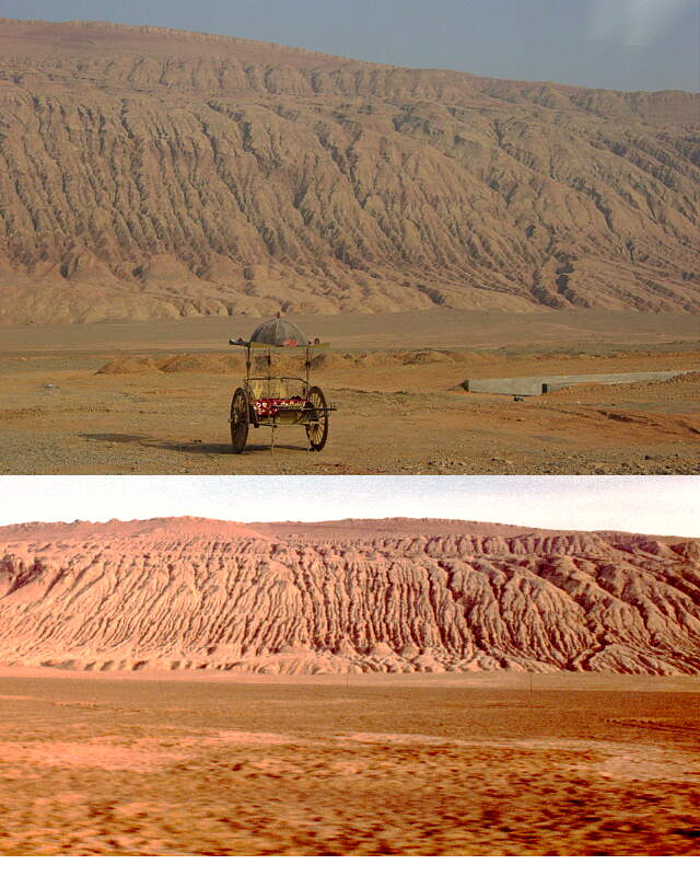 - 火炎山。山のシワの形は殆ど変わっていないようだ。但し今回撮影した展望所には、観光撮影用のワゴンやラクダが用意されていた。