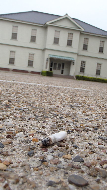 5月31日は世界禁煙デーであったが、岡大構内では各所で、吸い殻ポイ捨てが見られた。これらの場所はそもそも指定喫煙場所ではなく喫煙は禁止されている。禁煙エリアでも人に見つからなければこっそり吸ってしまうという行為は、警察に見つからなければモノを盗んでもいいというコソ泥と同罪だ。加えて、喫煙のあとに吸い殻をポイ捨てするような者は、大学人として、というか人間として失格である。