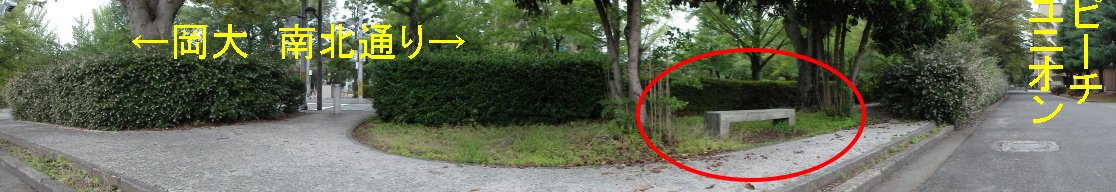 午前11時10分頃、岡大西門交差点南東角の舗道上で、キャンパス縁石に腰掛けて喫煙をしている茶髪の男性がいた。男性は、喫煙後、足元の吸い殻をポイ捨てして、学園理容室(委託業者)の店内に入っていたので、理髪店の関係者の可能性が高い。ちなみに、岡大南北道路の岡大西門〜岡大正門区間の歩道は岡大の敷地であり、敷地内禁煙の適用を受ける。イチョウ並木にも禁煙を呼びかけるポスターが貼られている。
