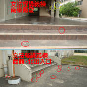 東出入口階段は人の出入りも多く、また柱には禁煙を呼ぶかけるポスターが張られている。このような注意書きを無視して喫煙し、さらにその後始末もできずにポイ捨てするような者は、(学生であるとすれば)もはや大学を卒業する資格は無い。というか、人間失格である。