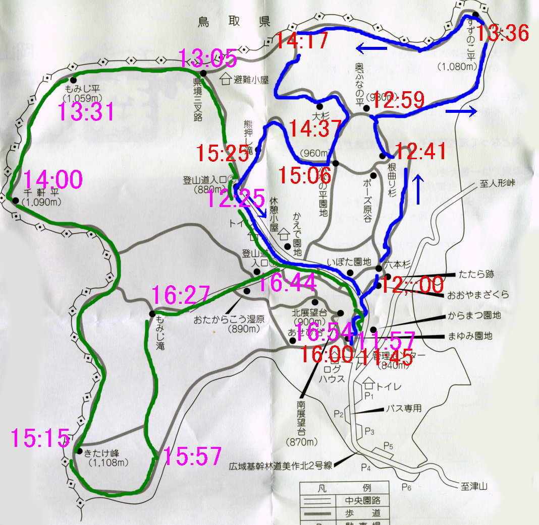 11月22日(土)は妻の要望により2週連続で県北の岡山県立森林公園を訪れた。 今回のコースは画像の緑色の線に示した通りであり、前回とは殆ど重なっていない。数日前に積雪があったが北斜面の日陰の一部を除いて殆ど融けており登山には影響しなかった。よく晴れていて伯耆大山や岡山県北・兵庫県北・島根県方面の山々がよく見えていた。 『もみじ平』から『千軒平』まで尾根筋を歩いたあと『もみじ滝』に下る計画であったが、妻が「せっかくここまで来たのだから『きたけ峰』にも登ってみたい」と要望したため、予定より大幅に時間を費やし、管理センターに戻った時は薄暗くなっていた。総歩数はスマホの計測では20323歩。 森林公園の登山道はよく整備されているが落ち葉が積もっていることもあって一部道に迷いそうなところもあった。なので日没後暗くなってしまうとヘッドランプで照らしても安全に通行することは困難。尾根筋に残っている避難小屋(一部は廃屋化)で一夜を明かしたほうが安全であるようにも思える。いずれにせよ、「せっかくここまで来たのだから」という欲からコースを変更することは登山の基本原則に反するものであった。 なお管理センターで尋ねたところ、園内ではクマの出現は確認されていない。 なお11月22日は『いい夫婦の日』であったが、そもそもこの日が何日であったのかは全く念頭に無かった。帰宅前に立ち寄った近隣のスーパーでも「きょうは21日だったか、22日だったか分からないが特売日ではないなあ」と喋っていた程度。 |