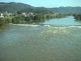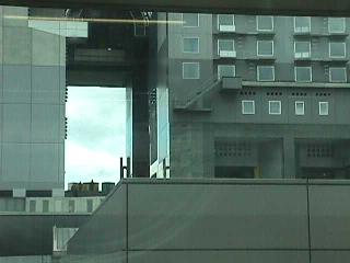 例えば、左側の席に座っていると、岡山駅を出た直後に旭川(写真左上)、しばらくして吉井川(右上)が眺められるが、いずれも南側座席から下流方向を眺めた場合は逆光になって少なくとも写真写りはよくない。 その後、姫路城、そして京都に着くと、羅生門をイメージしたという(←櫻さんからの情報)巨大な駅ビル(写真2段目左)が見えてくる。この間、南側の席から見えるものと言えば、明石海峡大橋ぐらいのものかと思う。