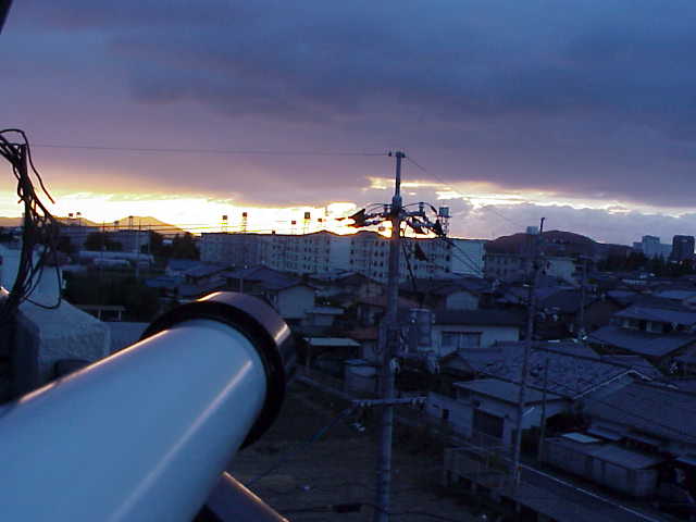 上にも述べたように11/16の朝は、日の出と同時刻に水星の日面経過があった。前夜から望遠鏡を用意して観察に備えたが、ご覧のように雪雲からやっと日がさす程度。それでも一瞬、太陽像を白紙に映し出すことができた。太陽中心部に近いほうに黒点らしきものが見えたものの水星はどこにあるか分からず。探しているうちに雲がかかってしまった。