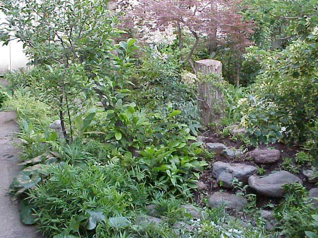 4枚目は東京自宅の庭。固定資産税を払っているので間違いなく私の所有する庭である。もっとも、父親の代の時にすでに庭木の配置が決まっているので、今さら位置を変えるわけにはいかない。所有していることと、コントロール可能であることが本質的に異なることの良い例だろう。てなことで上京時にはもっぱら草取りと剪定だけ。4月1日の日記の「ちょっと思ったこと」に記したように、春休みに一家全員で石庭を作ったばかり。余談だが画面右下に700系のぞみの先端部分に似た形の庭石が見えている。これは私が物心ついた頃から庭の一角にあって、犬が眠っているように見えて怖がったこともあった思い出の石でもある。