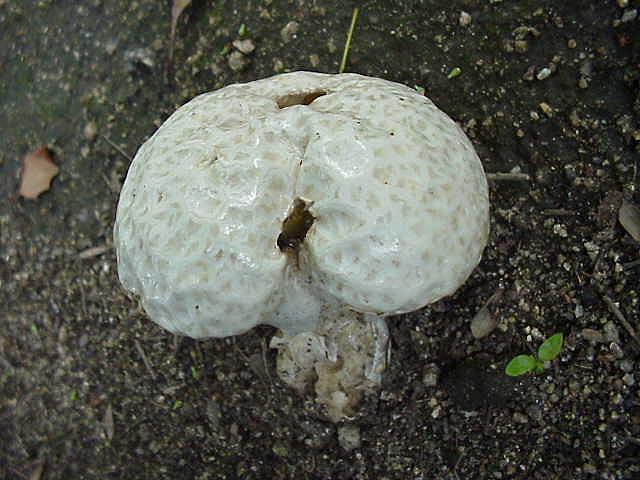 時計台前に出現したパン型のキノコ。脳茸の仲間ではないかと思われる。これとは別の場所には、ホンマに脳の形そっくりのキノコがあった(写真右)。なお、昨年、同じような写真を公開したところその翌日には丸ごと持ち帰った人が居た[昨年6月27日の日記参照]。この日記で知ったためなのか、独立して発見されたのか定かではないし、学術目的に採集された可能性もあるが、キノコを不必要に持ち帰る行為はヤメテもらいたいものだと思う。今年は、これを危惧して、この写真の公開を一週間遅らせた。左の写真は6/28撮影、右は7/1撮影のもので、7/5時点ではすでに胞子のかたまりとなって目立たなくなっている。 |