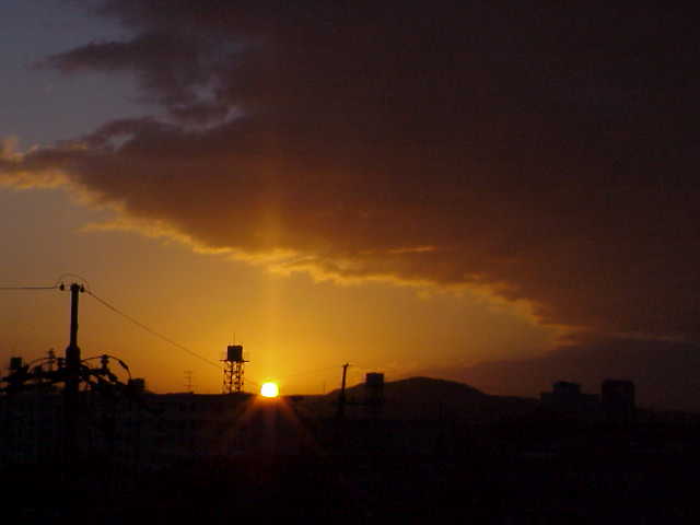1/5の朝になって、今年初めて地平線から(実際は低い山の山際から)の日の出を眺めることができた。 |