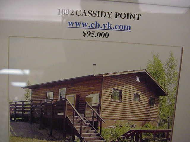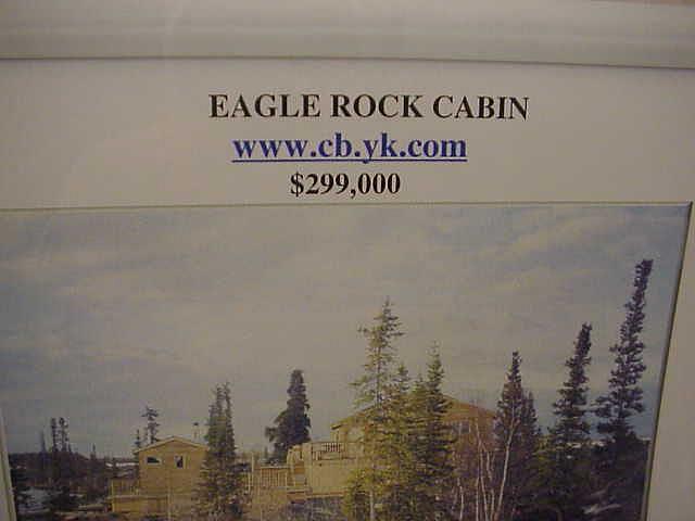 イエローナイフのモール内で見た不動産広告。左のログハウスは9万5千・カナダドル(760万〜855万円)。右の大きめのハウスは29万9千・カナダドル(2392万〜2691万円)。日本の地方都市と同じぐらいの価格か。なお各種物件はこちらから調べることができる。2000〜3000万円あれば、かなり良い物件を手に入れることができそうだが、厳冬期の外出は大変そう。 |