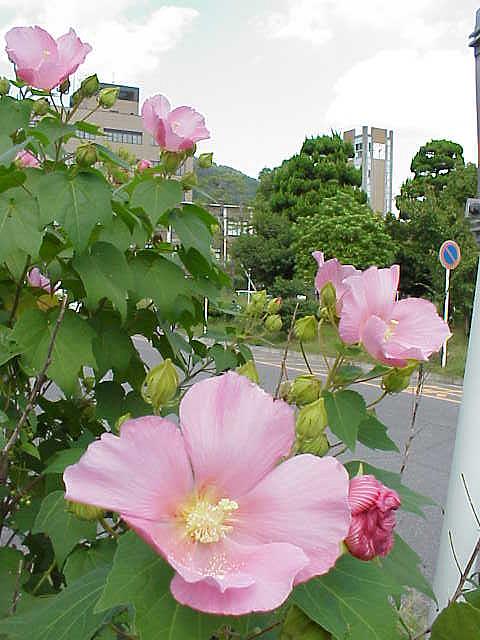 芙蓉の花。8月頃から咲き始めたはずだが、もう2カ月にもなるのにずっと咲き続けている。 |