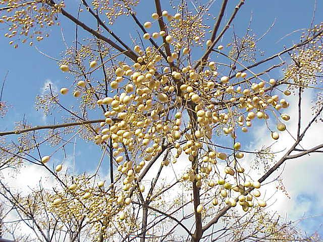センダンの実。いまが一番美しい。右の写真は11月2日にアップした写真の再掲。 |