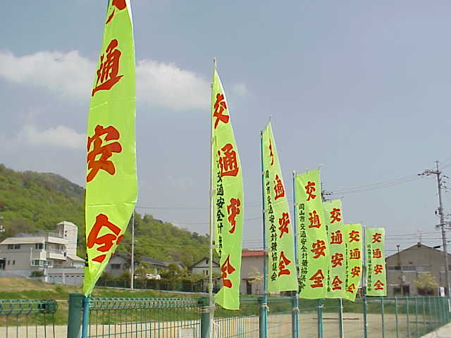 ちなみに、ノボリの標語は相変わらず「交通安全」、提唱者は写真にある「岡山市交通安全対策協議会」と、もう少し幅の広い「岡山県西警察・西交通安全協会」連名のものが取り付けられていた。まことに残念ながら、「所得隠しはやめよう」、「税金はちゃんと払いましょう」といった標語は見かけなかった。[3/18の日記参照]。