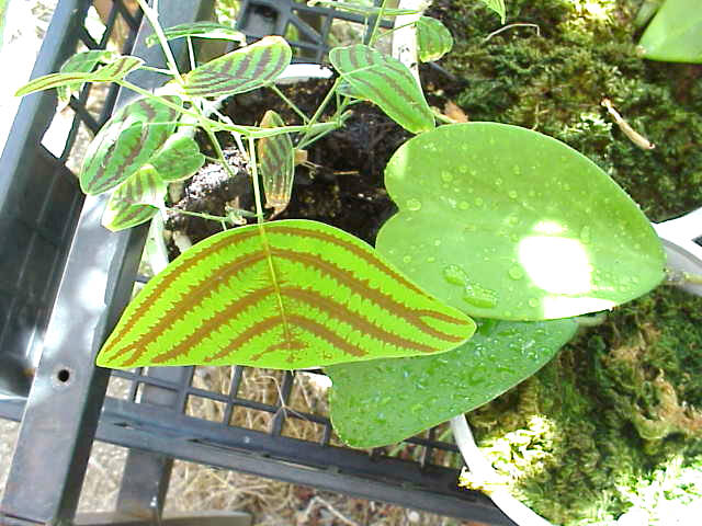 ストライプヒコウキソウ Christia vespertilionisとなっていた。2週間ほど前に行きつけの花屋で購入。縞模様と葉の形が面白い。ハングライダーに似ているようにも見えるが、むしろ縞模様を虎に見立てて、甲子園球場で「タイガース草」として売り出せば大ヒットするに違いない。もっとも、そのためにはタイガースが優勝しなければ。何年先のことになるやら.... |