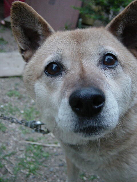 わんこの謎 借りている畑の近くには写真のような犬がいる。飼い主は別の家に住んでおり、一日2回、餌をやりにくる程度で、名前すらつけていない。メス犬ということもあり、妻や私は「わん子」と呼んでいる。見知らぬ人が来るとよく吠えるので番犬の役目は十分に果たしているようだ。