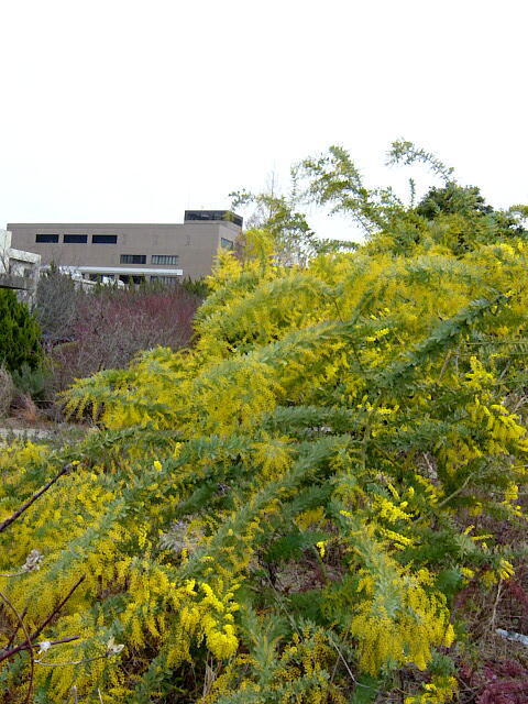 大学構内のミモザが満開となった。まだまだ最低気温が氷点下となる寒さが続いているが、春はもうすぐ。 |