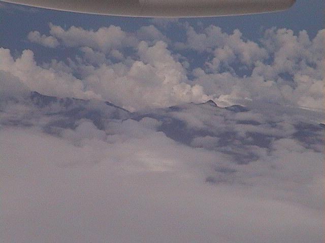 ニューギニア上空は殆ど雲ばかりで、再び海上に達した瞬間を知ることはできなかった。そんななか、ポートモレスビー近くと思われる4000メートルクラスの山々 が少しだけ見えた(写真下段左)。